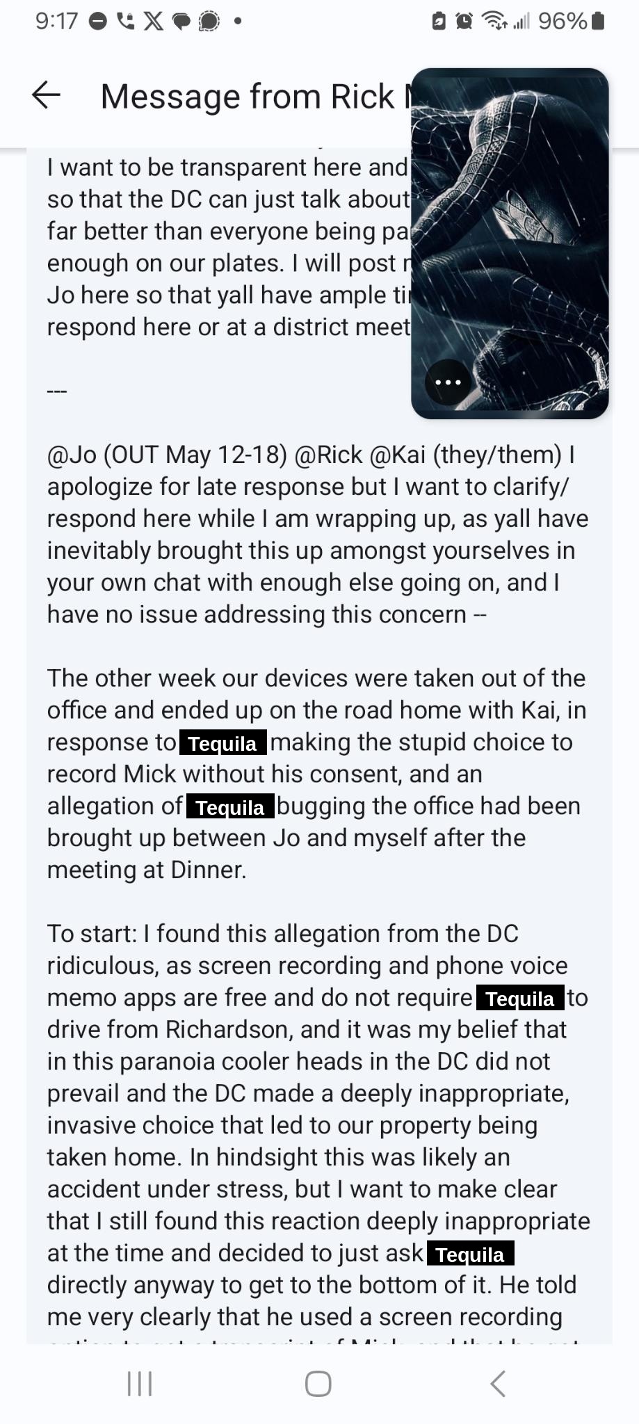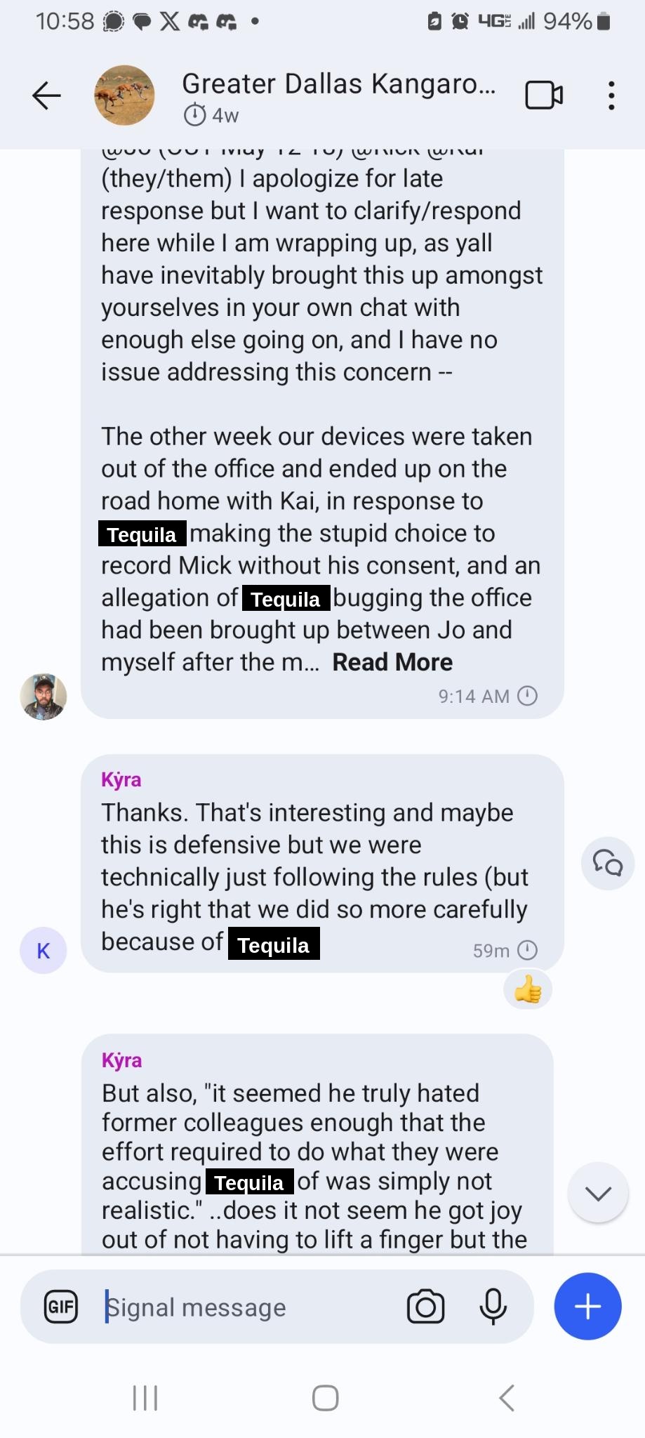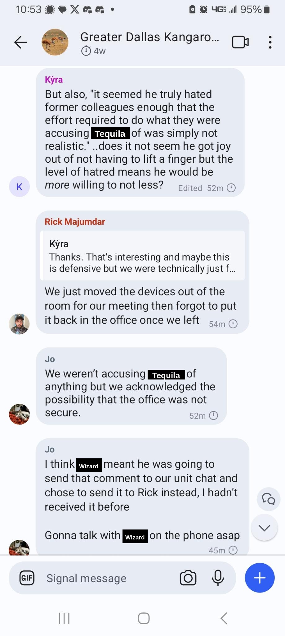 Screenshots from the DC chat regarding office paranoia incident on 5/23