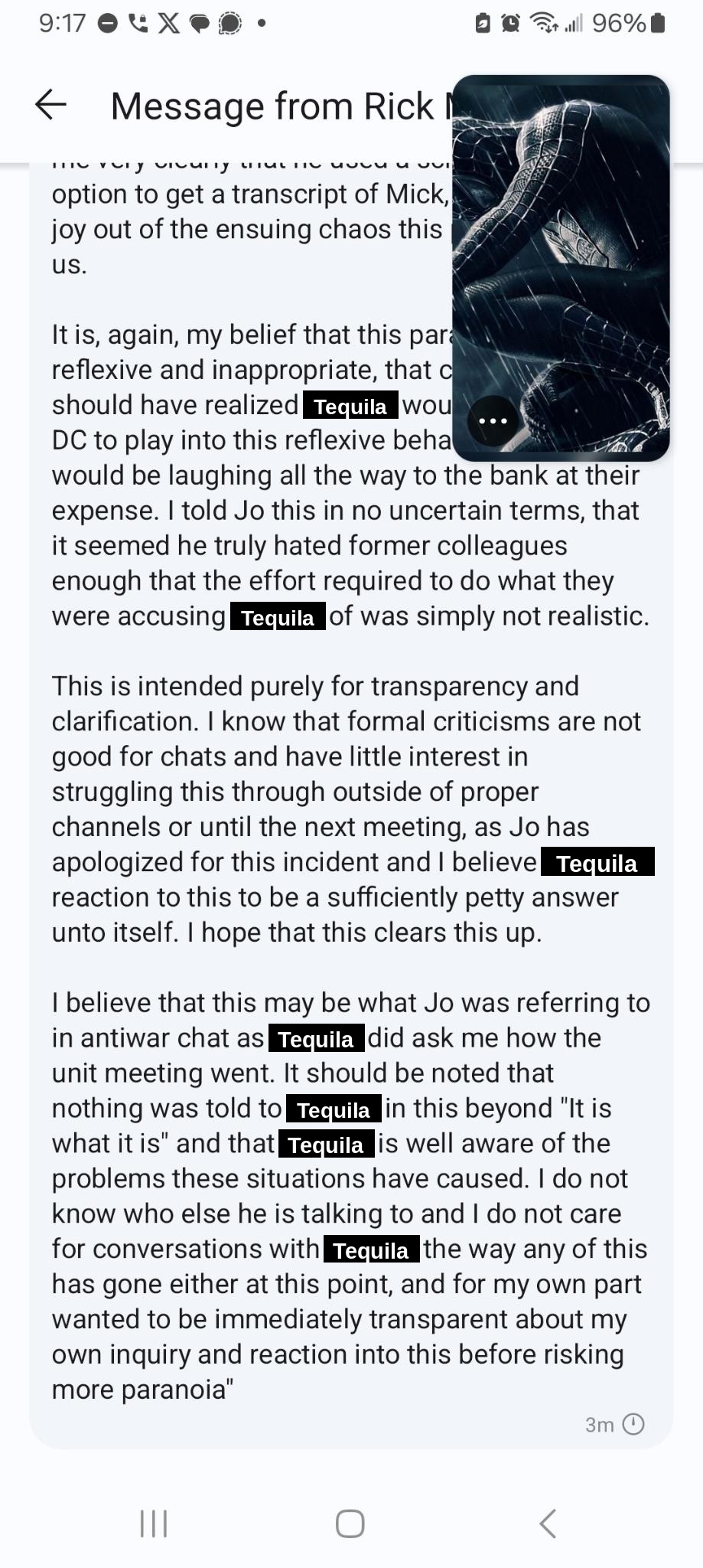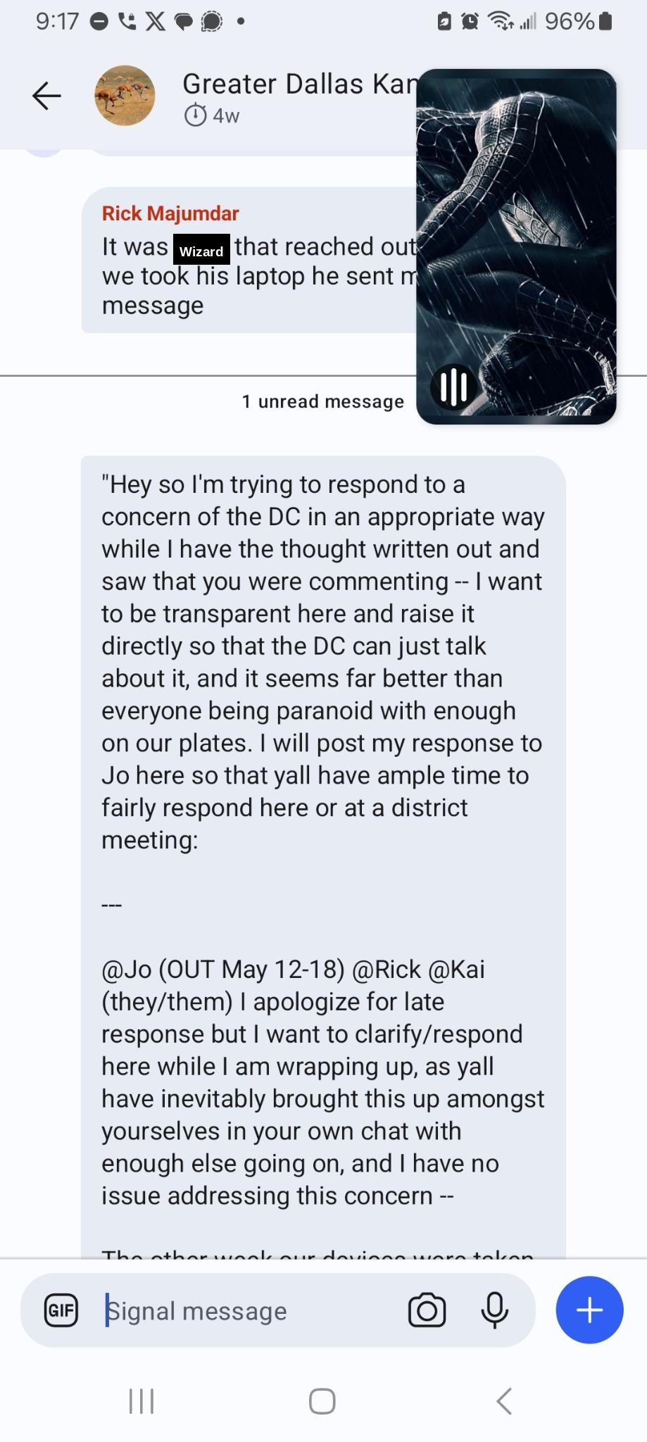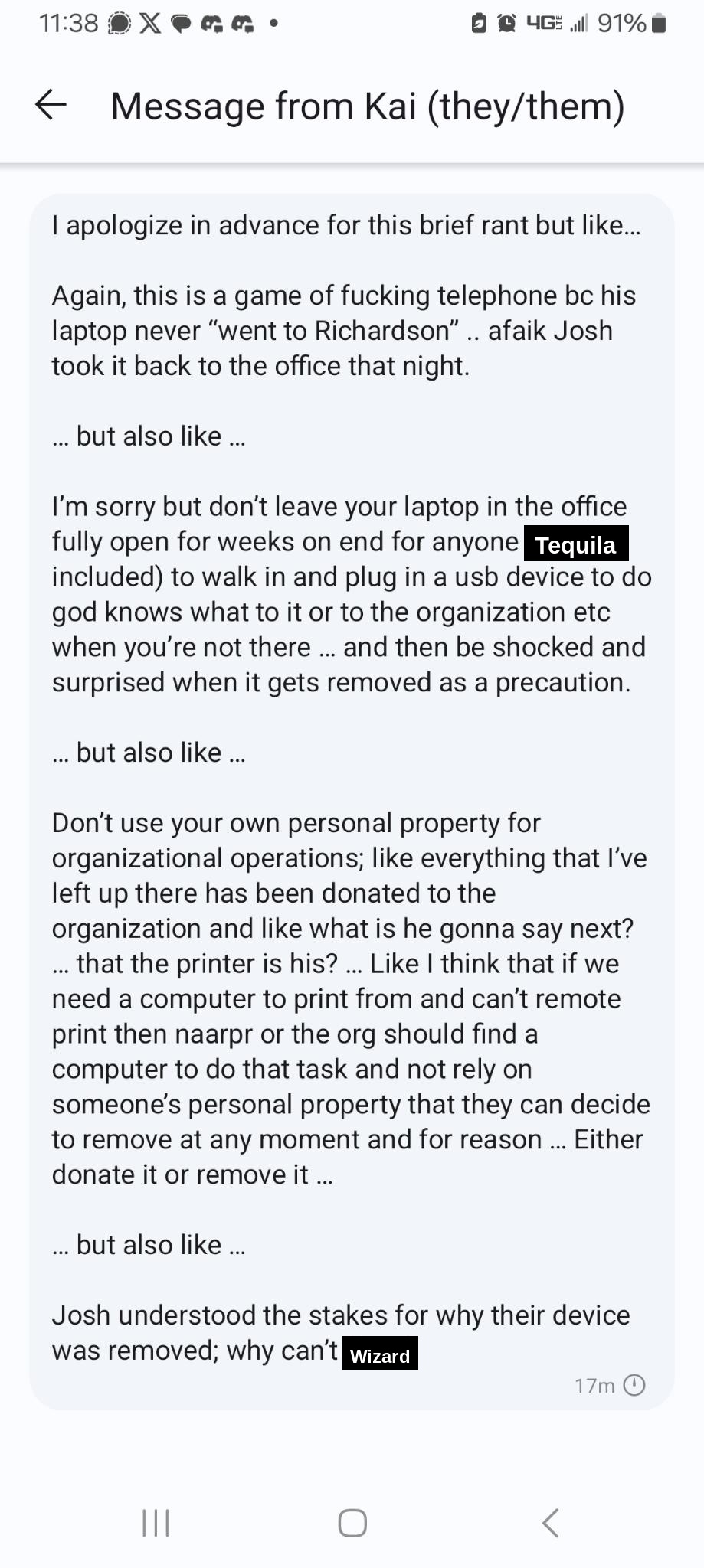 Screenshots from the DC chat regarding office paranoia incident on 5/23